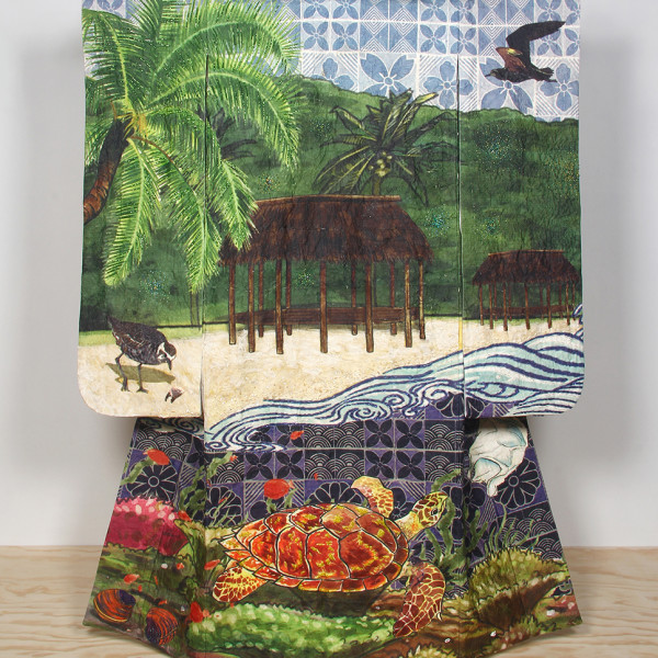 On now at Pātaka Art + Museum, Yuki Kihara explores her multicultural heritage in an exhibition of garments inspired by the Sāmoan siapo and the Japanese kimono.