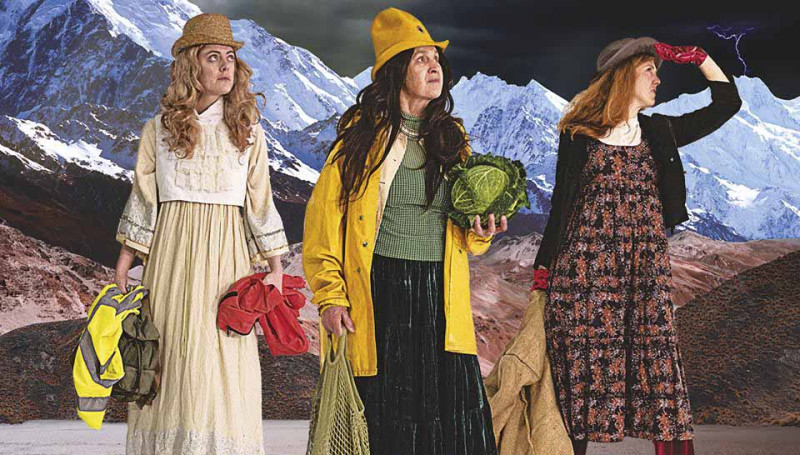 Actual Fact begins when three women witness a series of simultaneous, bizarre events. K (Karin McCracken), M (Madeline McNamara), and F (Freya Finch) are happily exchanging jokes when a fan turns on out of its own accord, a tarpaulin lights up, and two green buckets fall over. A satsuma and a cabbage are also involved, but I won’t spoil anything here.