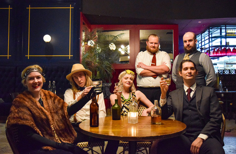 From the minute I walk through Dillinger’s doors I’m immersed in the world of the speakeasy. A wonderful band plays while actor Calvin Standrill (playing Vincent Monoghue) greets me in a stellar American accent and gestures towards a free drink, my favourite kind. In this case, it’s a French 75 and it’s delicious. Costume designer Jessea St-Louis has done an exquisite job of decking the actors out in 20s garb, with audiences rising to the challenge too. Some are so well dressed I can’t tell them apart from the cast, which shows the level of enthusiasm at play here.