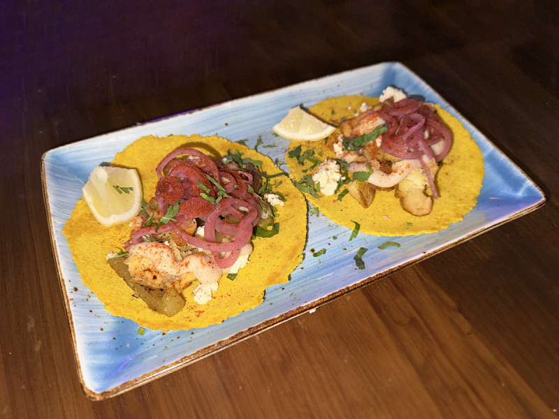 Arriving moments after the sharing platter were our first set of tacos followed by the second about five minutes later. We opted for the chorizo tacos – made with pork meat, roast peach salsa, queso fresco, patatas cerilla, lime, and cilantro – and the papas tacos, with potato, poblano peppers, cauli crema, queso, and hibiscus pickled onion and cilantro. Both were a subtle blend of tangy, sweet, and savoury flavours, a perfect concoction for a cold night. My only note is that I did request the onions on the side as I have an allergy and they were instead sprinkled on top of the dish, even though we were assured our selections didn’t contain onion.